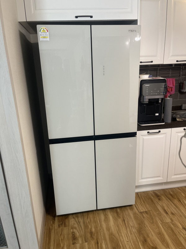 밝은 색의 냉장고라 주방 느낌이 확 바뀐게 신기하네용!!